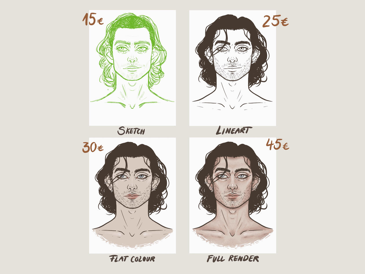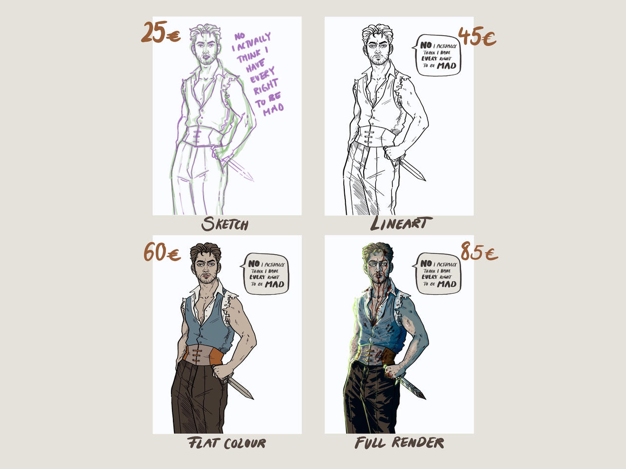 • Personal use only! Commercial use will be priced differently and is only permitted after extensive discussion• I retain full right of the image and am allowed to post the image on social media unless it was discussed beforehand• When posting the final image online you must mention me as the original artist or use the version with a watermark I will provide• Payment will be via Paypal (+5% Paypal fee) before the drawing process begins• I have the right to refuse any request